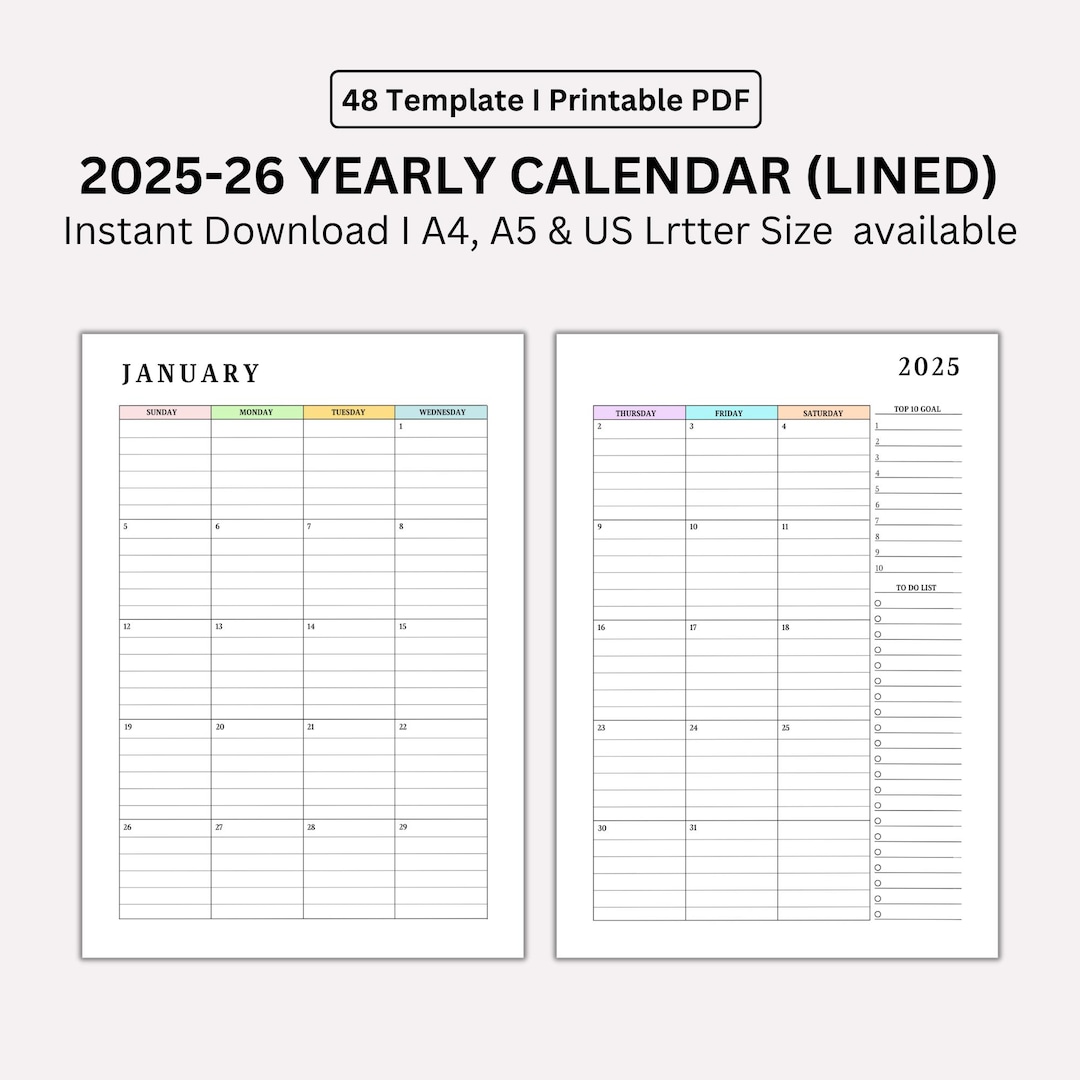 2025 2026 Monthly Lined Calendar Printable Dated Month on 2 Pages