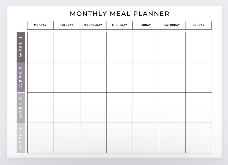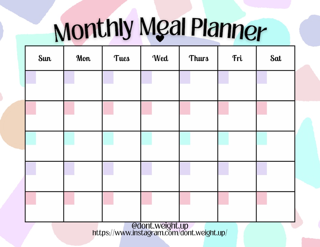 Monthly Meal Planner Digital Download Monthly Meal Schedule Eat