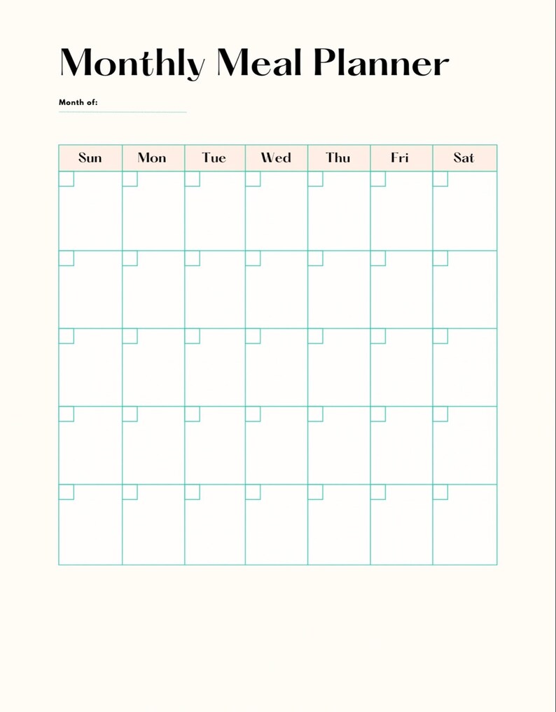 Monthly Meal Planner Monthly Meal Plan Printable Monthly Meal Plan