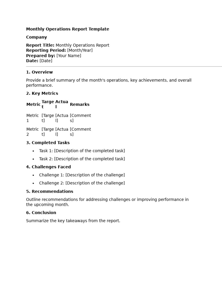 Monthly Operations Report Template in Google Sheets MS Word Pages