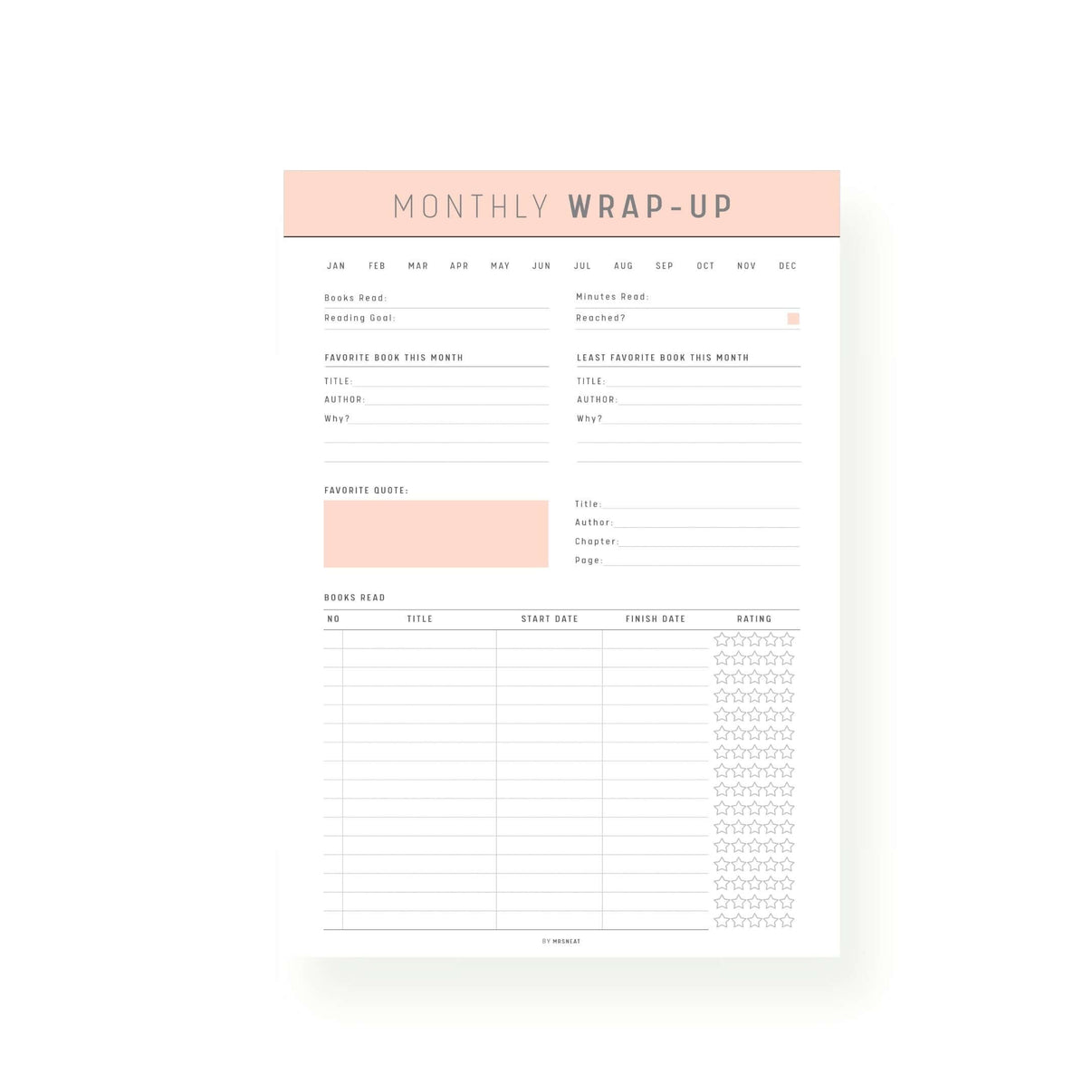 Monthly Reading Wrap Up Template PRINTABLE M222 mrsneat