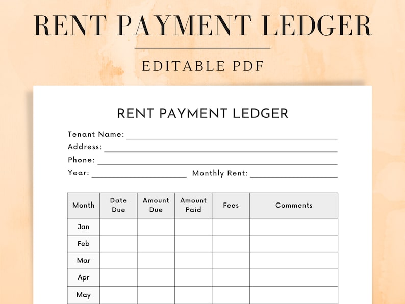 Rent Payment Ledger Monthly Yearly Rent Payment Tracker Etsy