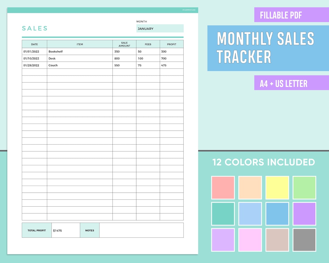Editable Monthly Sales Tracker Printable Fillable Order Tracker Sales