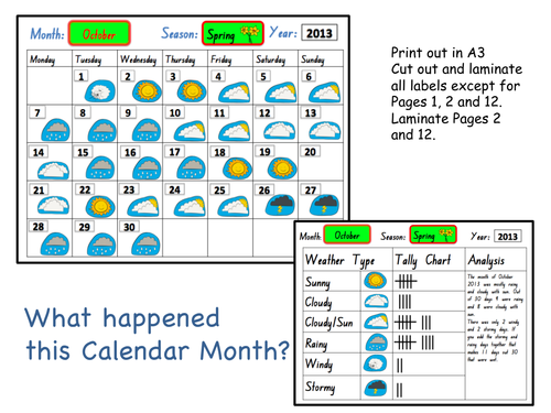 Monthly Weather Calendar Worksheets Teaching Resources TpT
