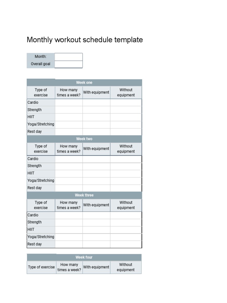 Monthly Workout Schedule Template Download Printable PDF Templateroller