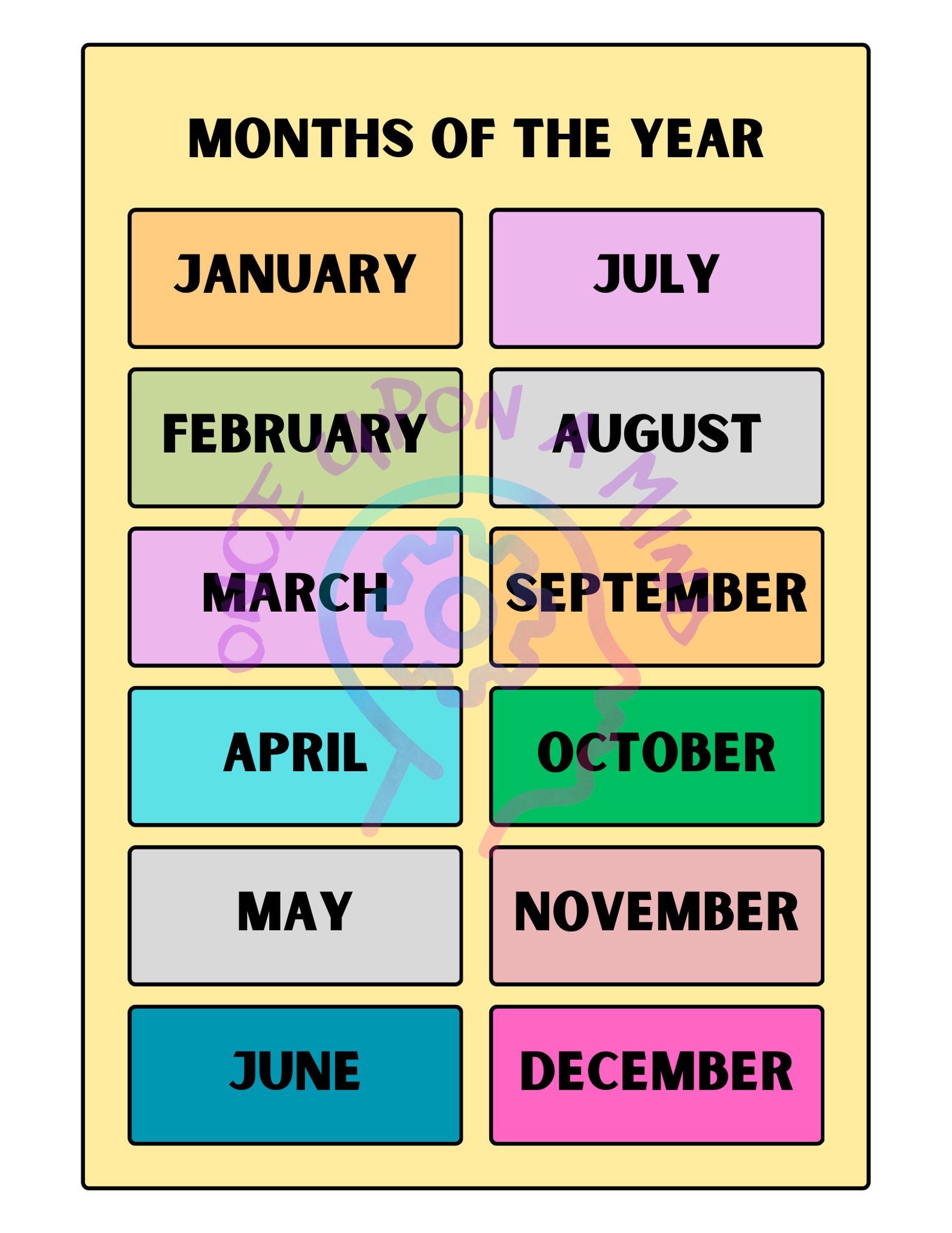 Months of the Year Digital Print Kids Learning Poster Kindergarten
