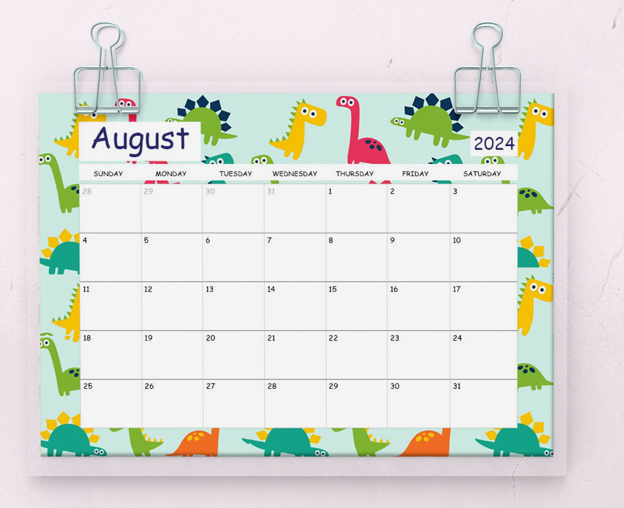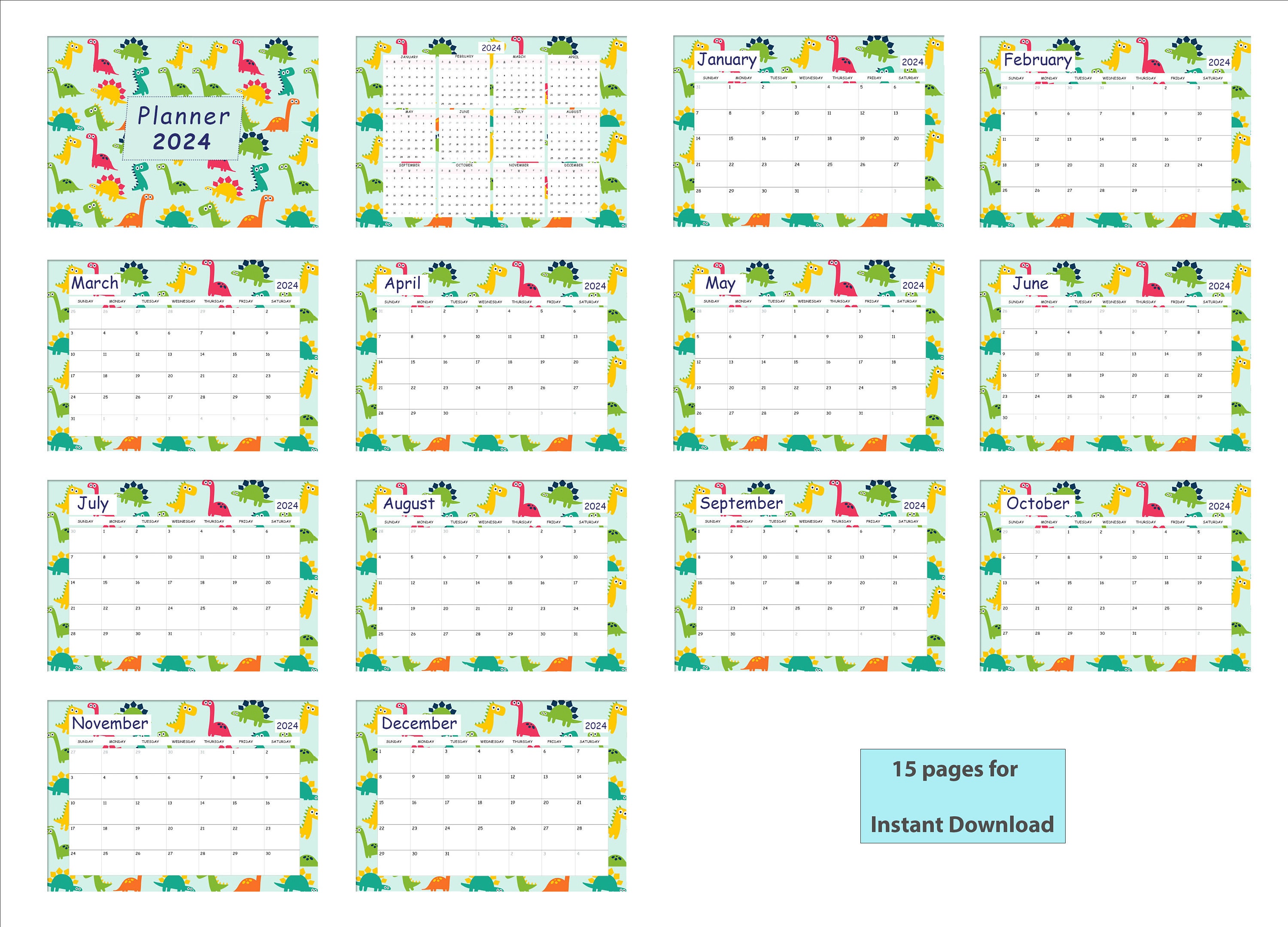 DINOSAUR CALENDAR 2024 PRINTABLE for Instant Download Dinosaur Planner