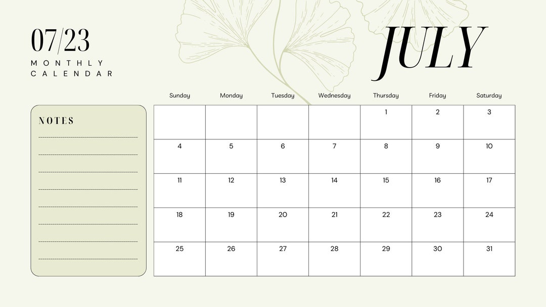 Download Printable Monthly Calendar with Notes Section PDF