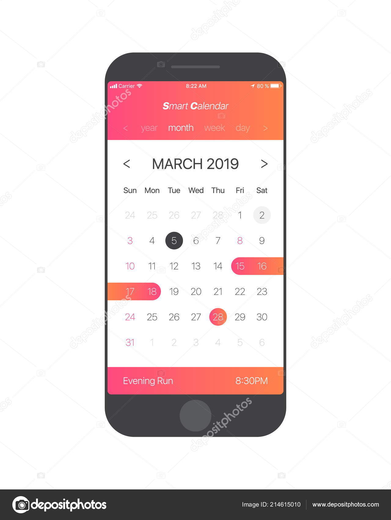 Vector Calendario App UI Concepto Vector de stock por ©yamonstro 214615010