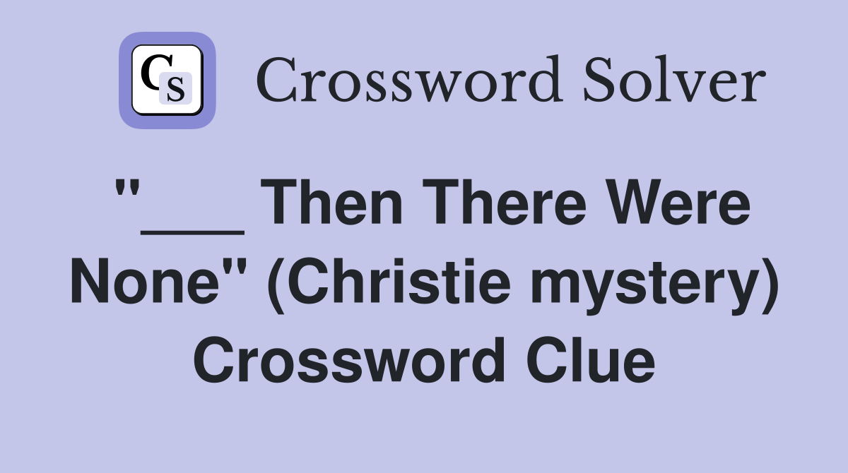 Then There Were None quot (Christie mystery) Crossword Clue Answers