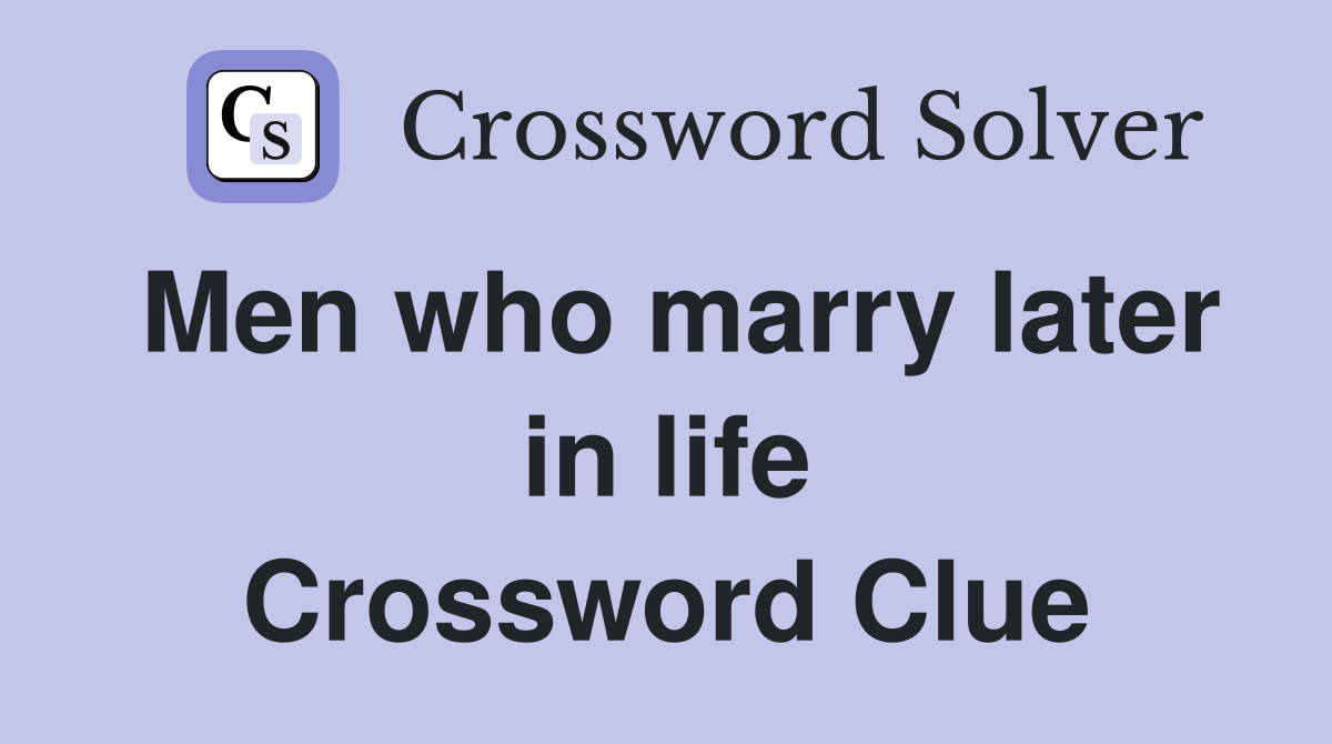 Men who marry later in life Crossword Clue Answers Crossword Solver