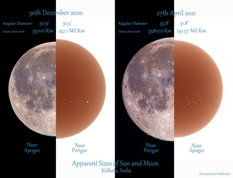 Apparent Sizes of Sun and Moon near Apogee and Perigee Sky