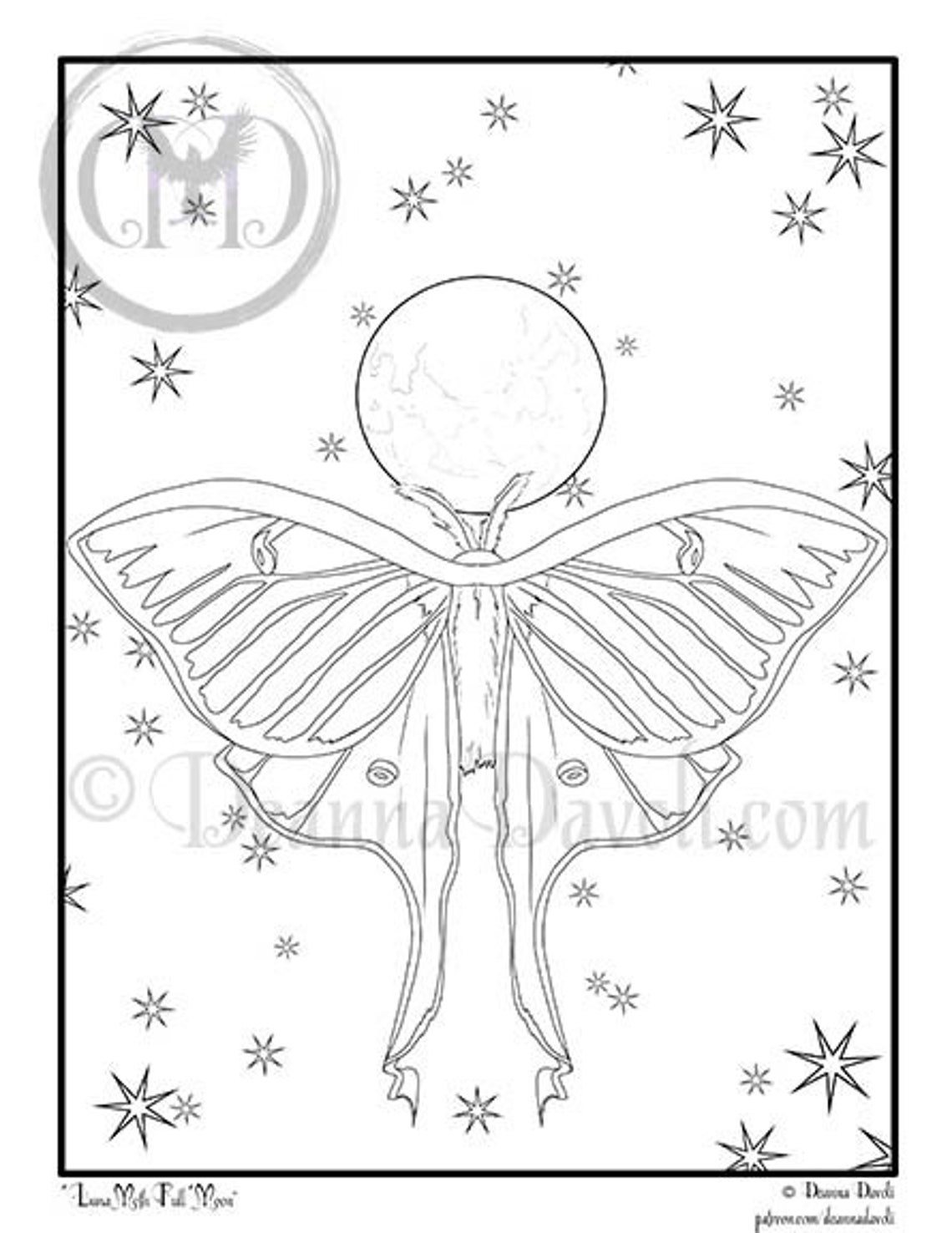 Luna Moth Coloring Page / Moon Phase Printable / Digital Etsy