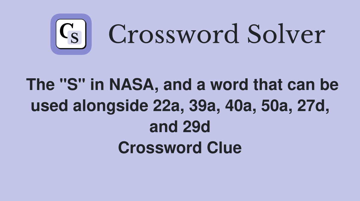 The quot S quot in NASA and a word that can be used alongside 22a 39a 40a