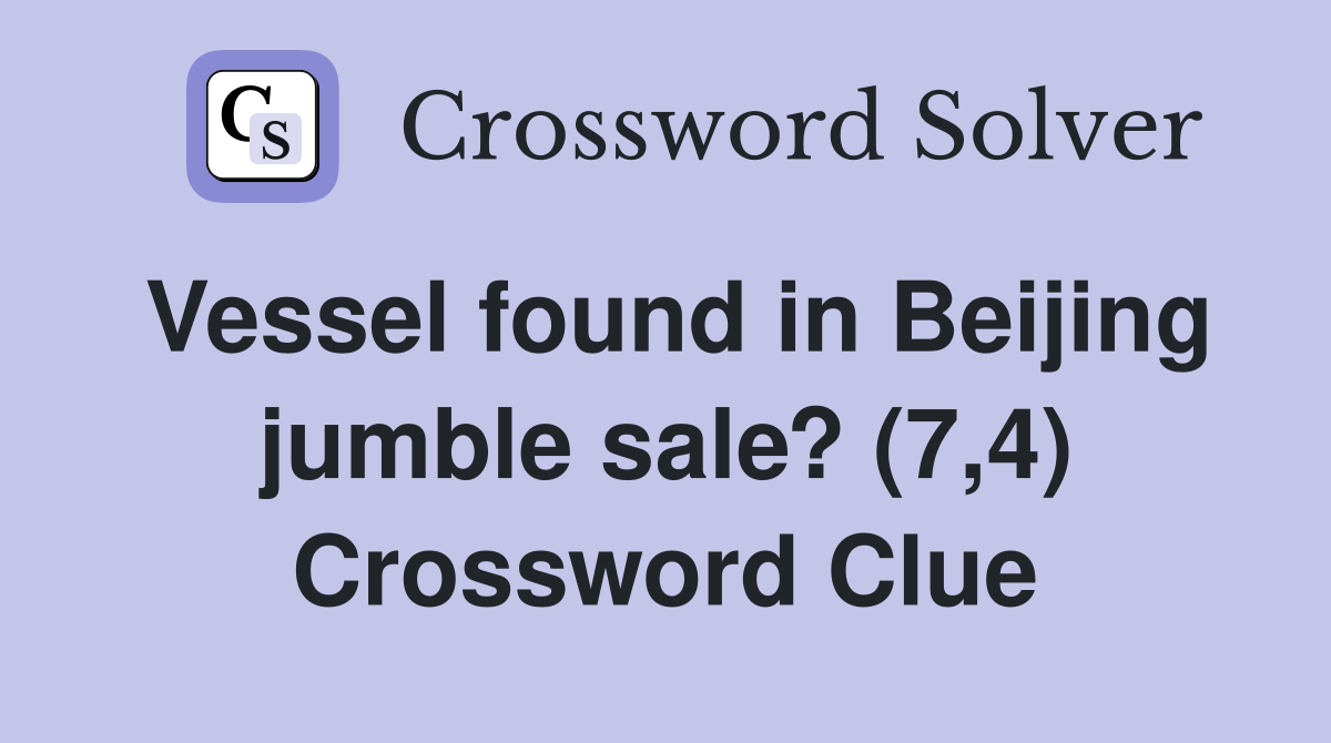 Vessel found in Beijing jumble sale? (7 4) Crossword Clue Answers
