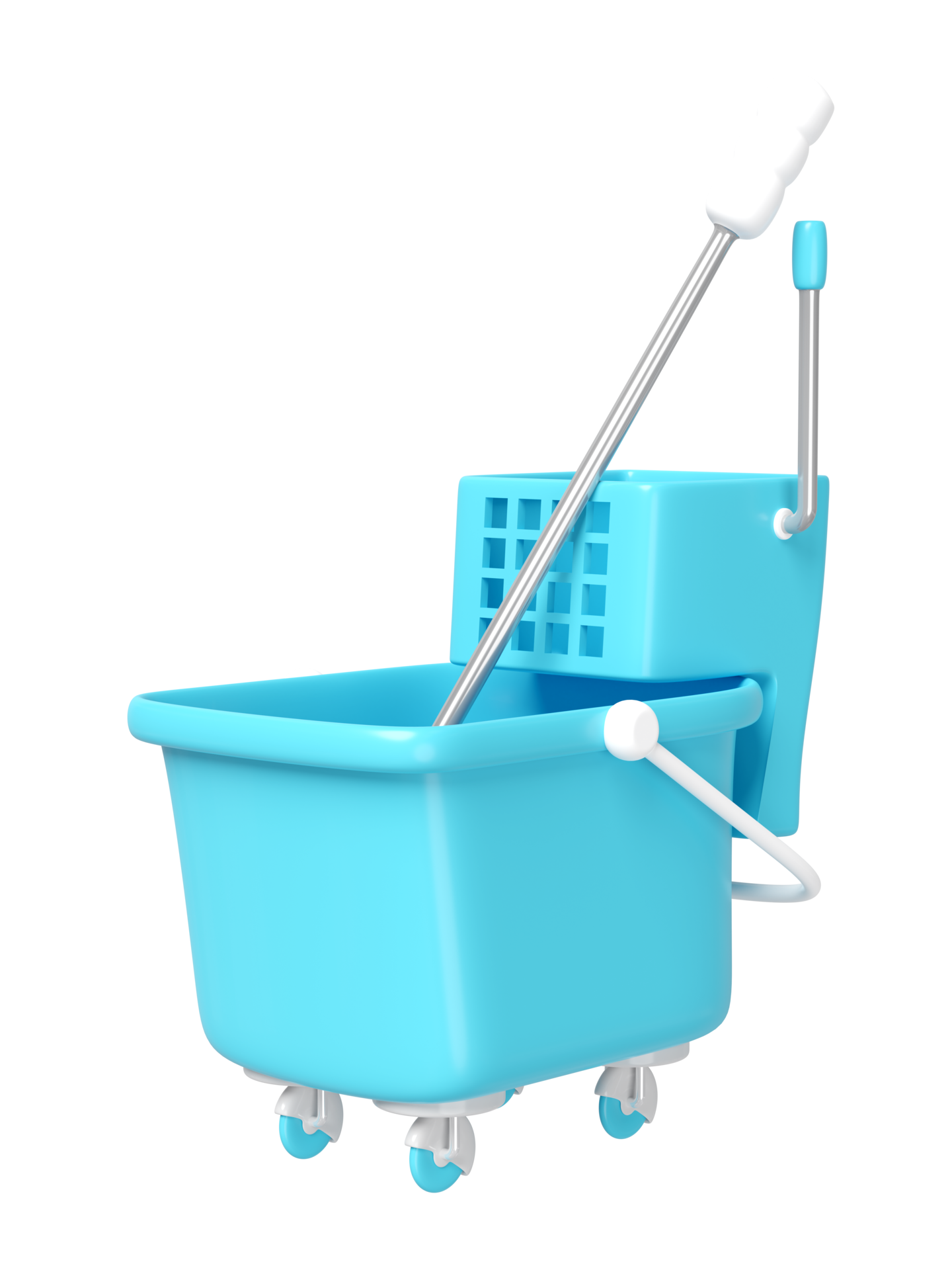 3d clean floor mop with plastic bucket isolated cleaning tool