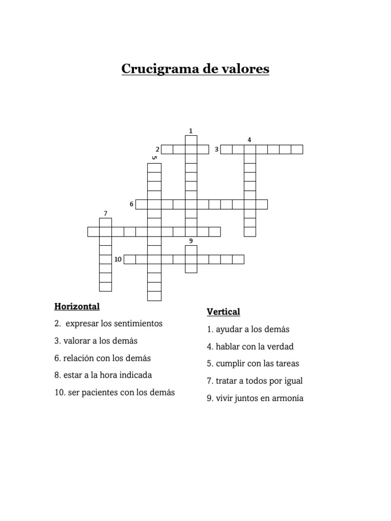 Crucigrama de Valores PDF