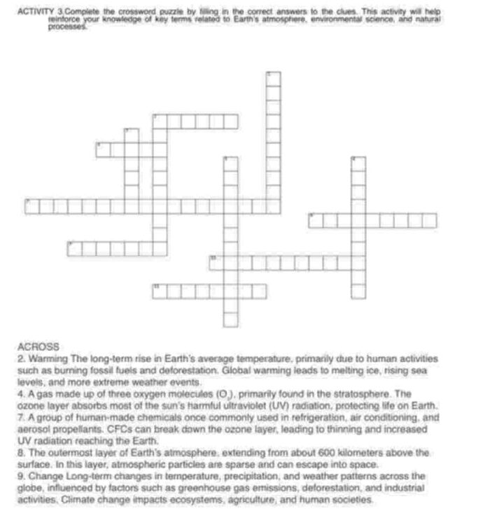 ACTIVITY 3 Complete the crossword puzzle by StudyX