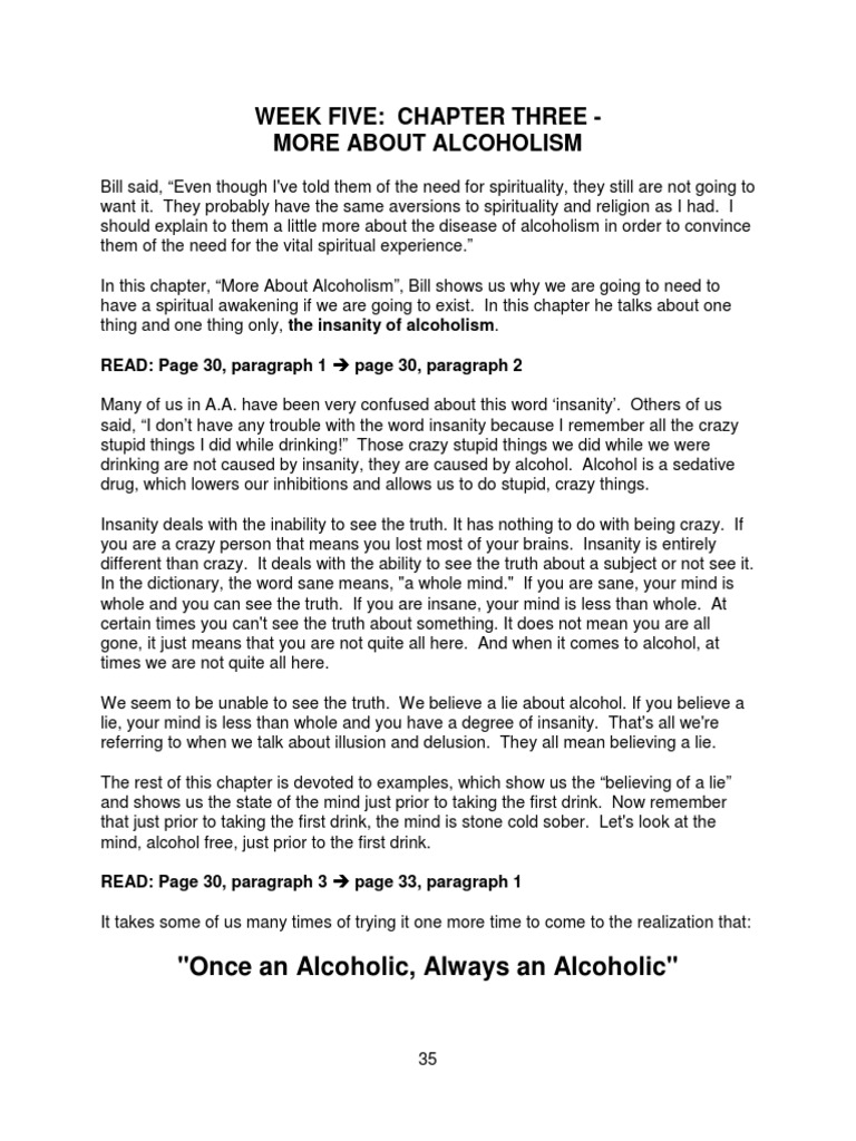 Week Five: Chapter Three More About Alcoholism: quot Once An Alcoholic