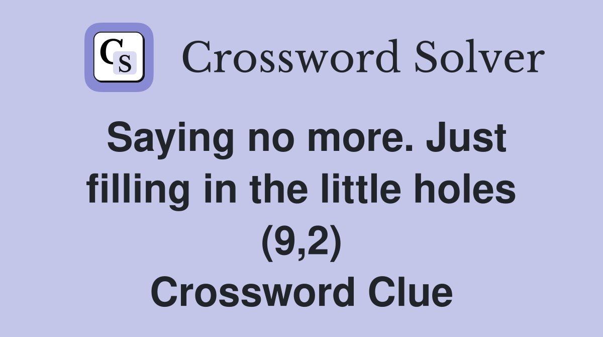 Saying no more Just filling in the little holes (9 2) Crossword Clue