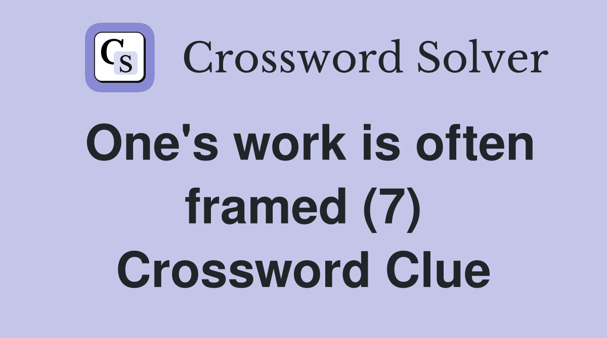 One #39 s work is often framed (7) Crossword Clue Answers Crossword Solver