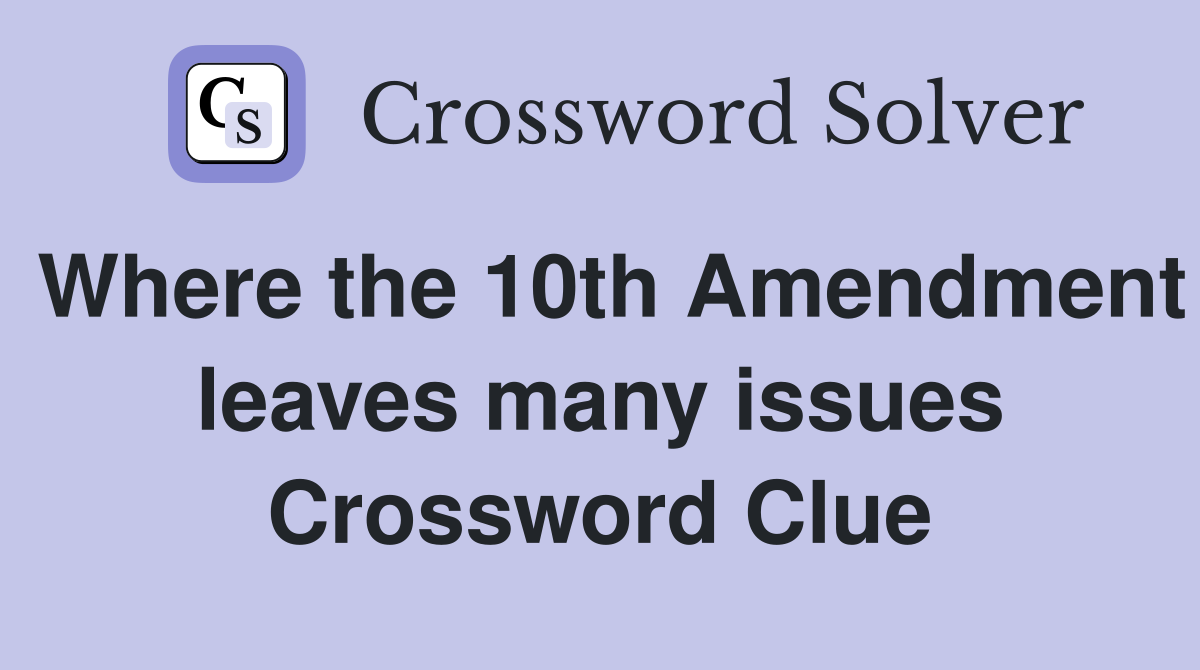 Where the 10th Amendment leaves many issues Crossword Clue Answers