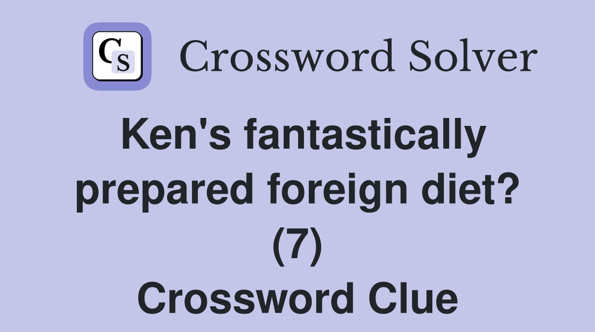 Ken s fantastically prepared foreign diet? (7) Crossword Clue Answers