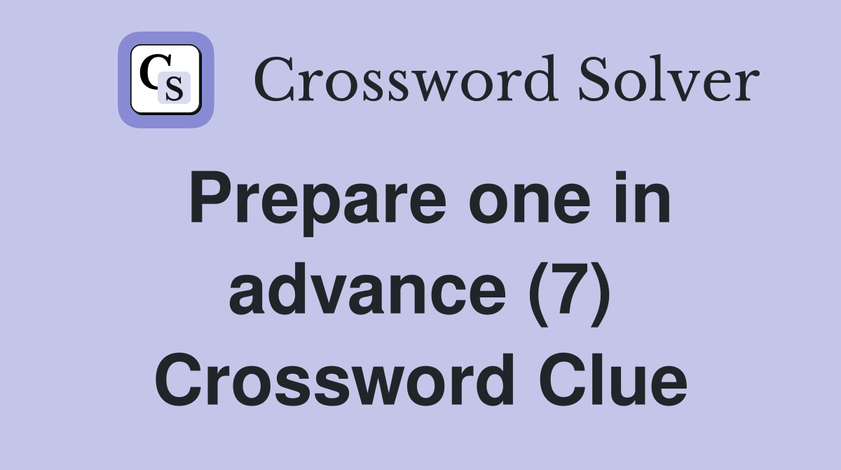 Prepare one in advance (7) Crossword Clue Answers Crossword Solver