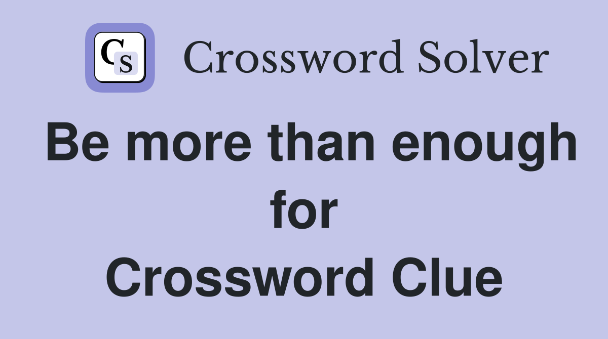 Be more than enough for Crossword Clue Answers Crossword Solver