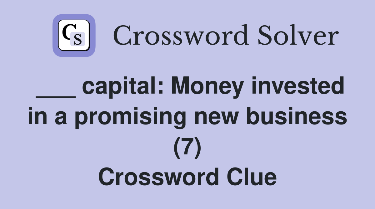 capital: Money invested in a promising new business (7) Crossword