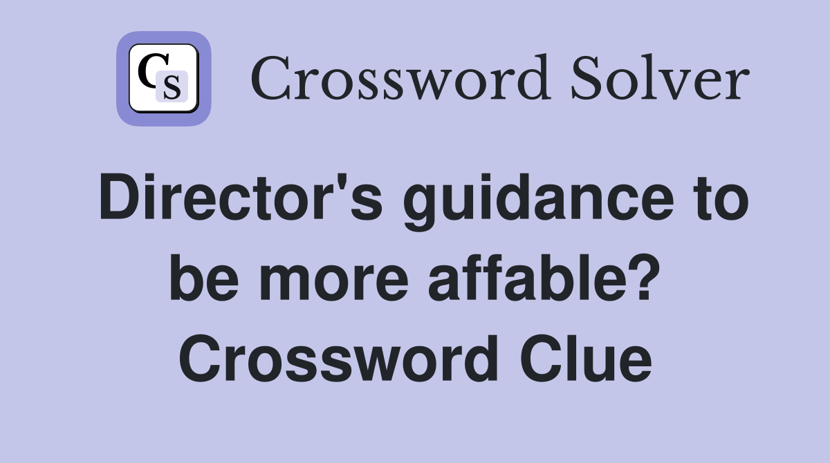 Director #39 s guidance to be more affable? Crossword Clue Answers