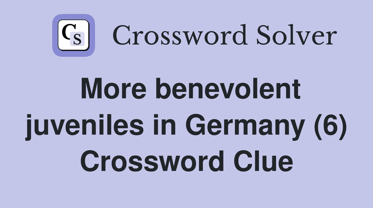 More benevolent juveniles in Germany (6) Crossword Clue Answers