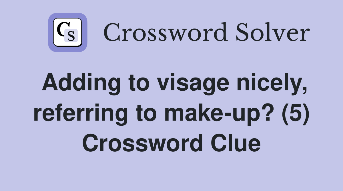 Adding to visage nicely referring to make up? (5) Crossword Clue