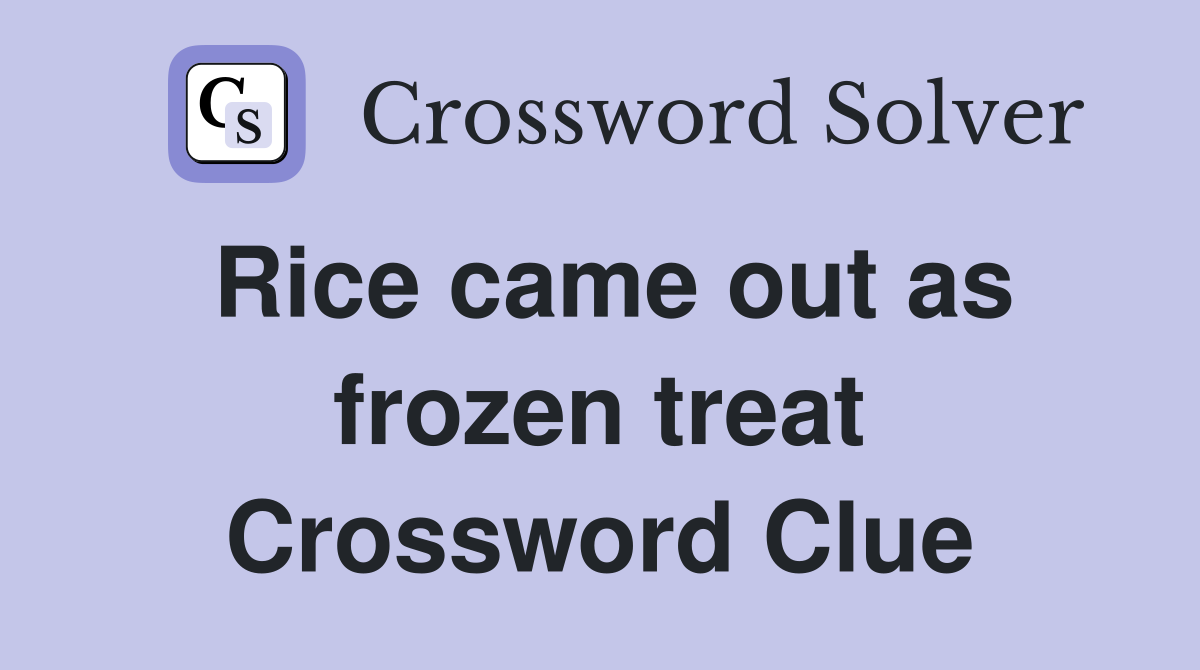 Rice came out as frozen treat Crossword Clue Answers Crossword Solver