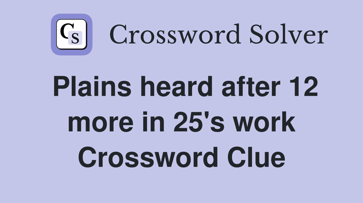 Plains heard after 12 more in 25 #39 s work Crossword Clue Answers
