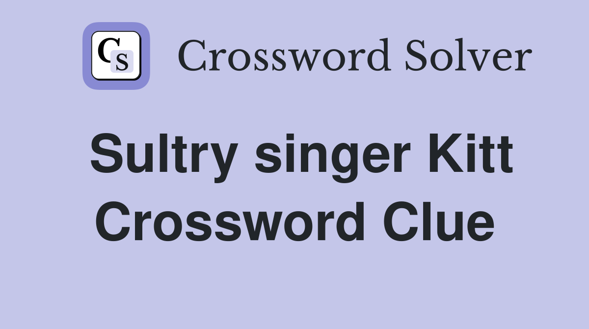 Sultry singer Kitt Crossword Clue Answers Crossword Solver