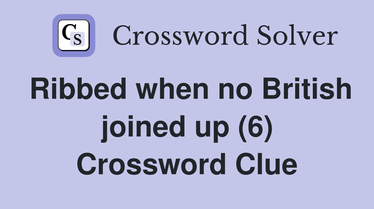 Ribbed when no British joined up (6) Crossword Clue Answers