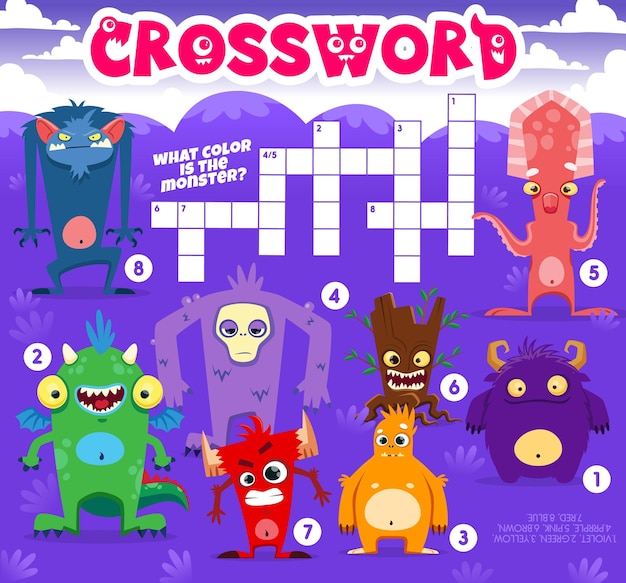 Colorful Crossword Puzzle with Quirky Monster Characters Jiffy Designs