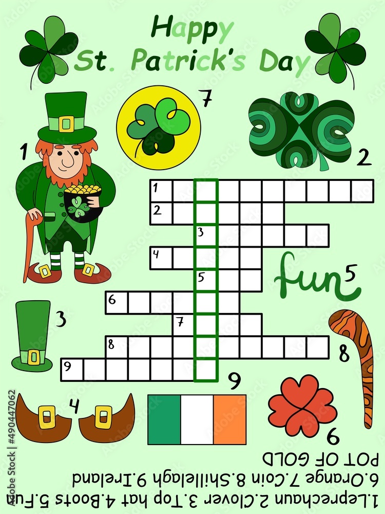 Patrick #39 s day crossword with a keyword and an answer for children