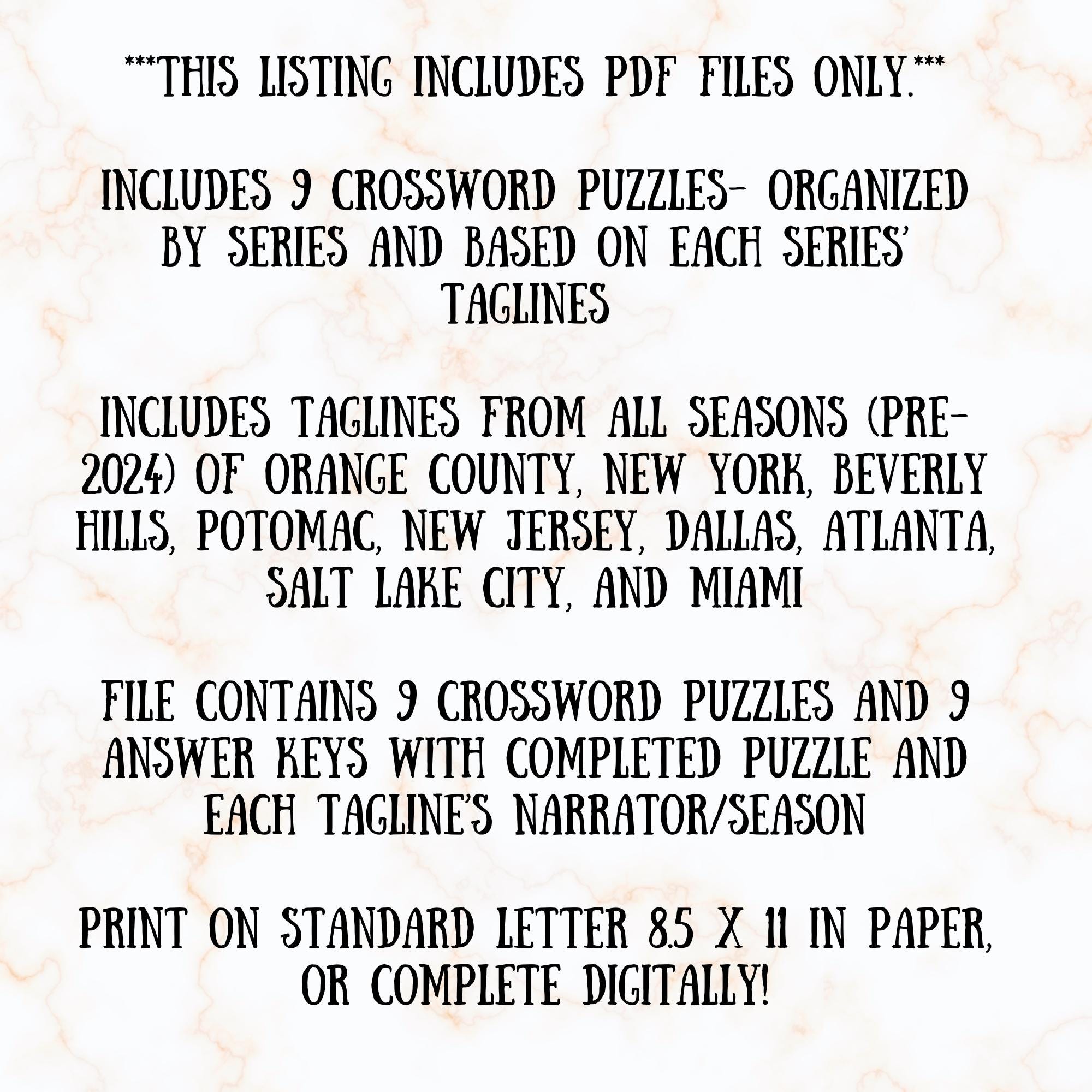 The Real Housewives Printable Crossword Trivia Real Etsy