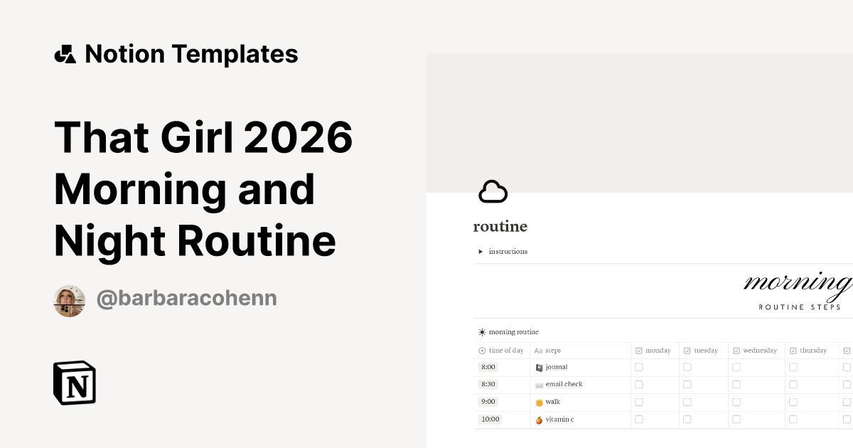 That Girl 2026 Morning and Night Routine Template by Bárbara cohen
