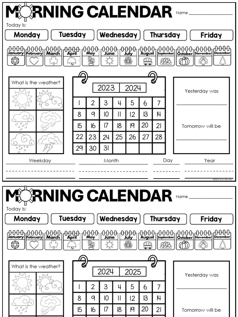Morning calendar worksheet by FRAMEY WORK SHEETS TPT