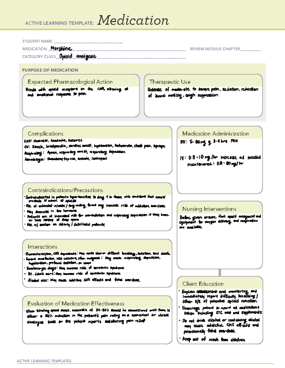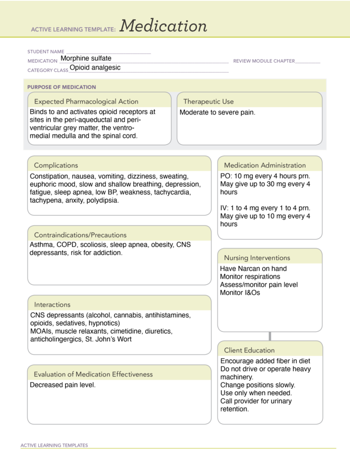 Morphine Medication Template ACTIVE LEARNING TEMPLATES THERAPEUTIC