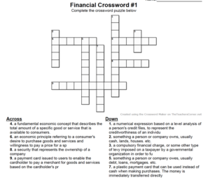 Consumer and Mortgage Loans Crossword Puzzle
