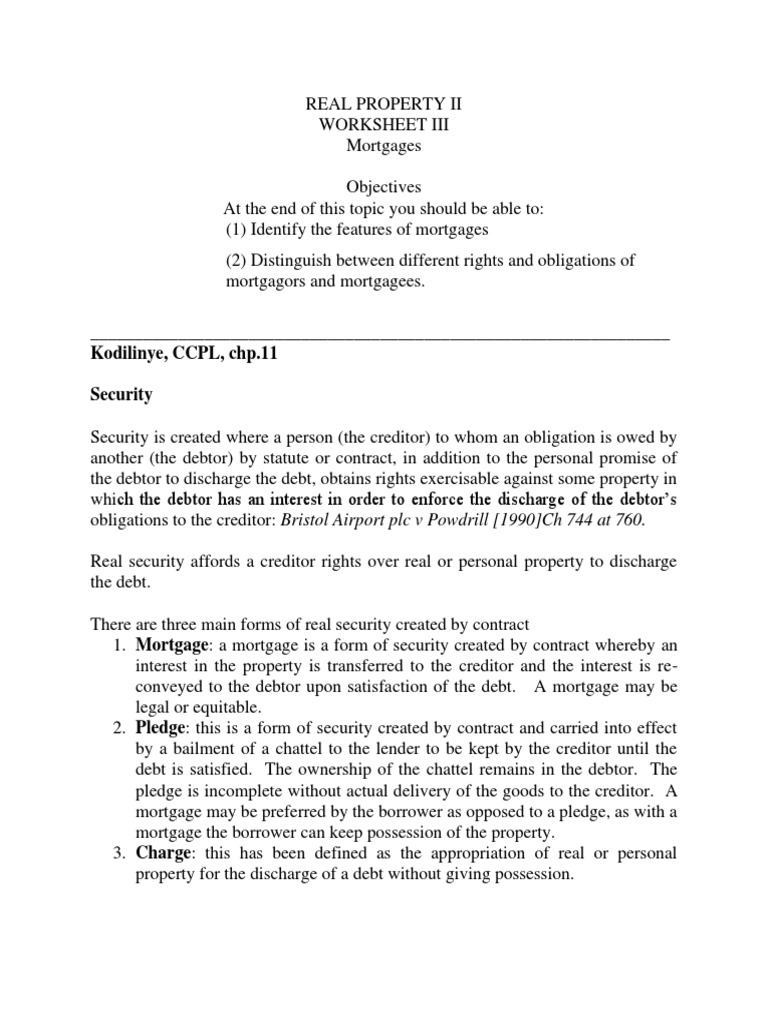 Mortgages Worksheet alternative format PDF Mortgage Law Multiple