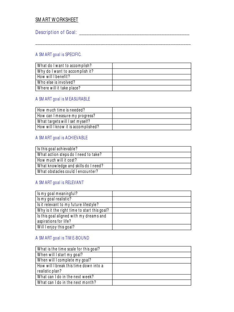 Smart Goal Worksheet Set and Achieve Your Goals