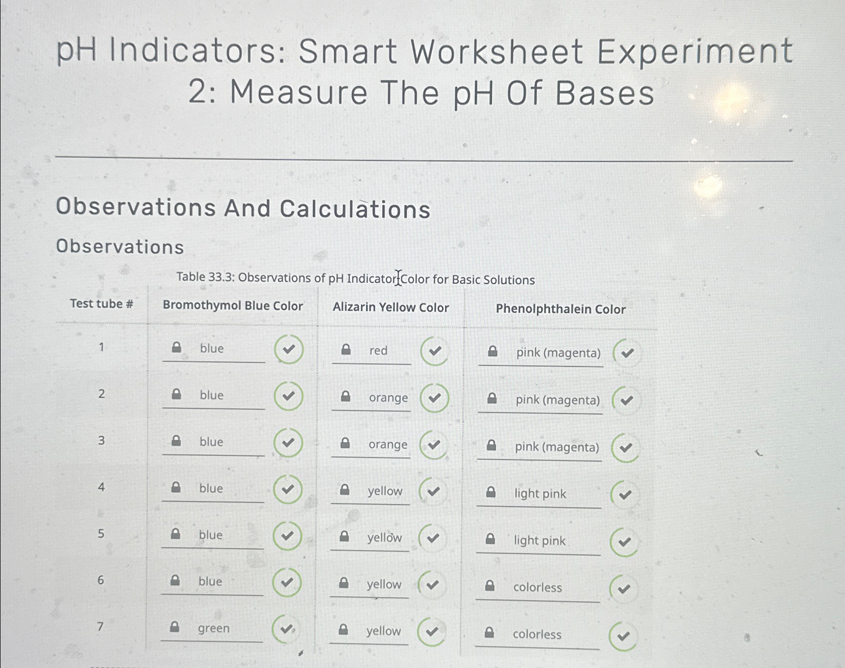 pH Indicators: Smart Worksheet Experiment 2: Measure Chegg com