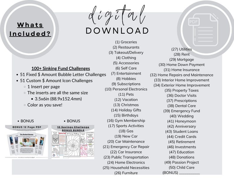 100 Sinking Fund A6 Savings Challenges: Bubble Letter Icon (digital