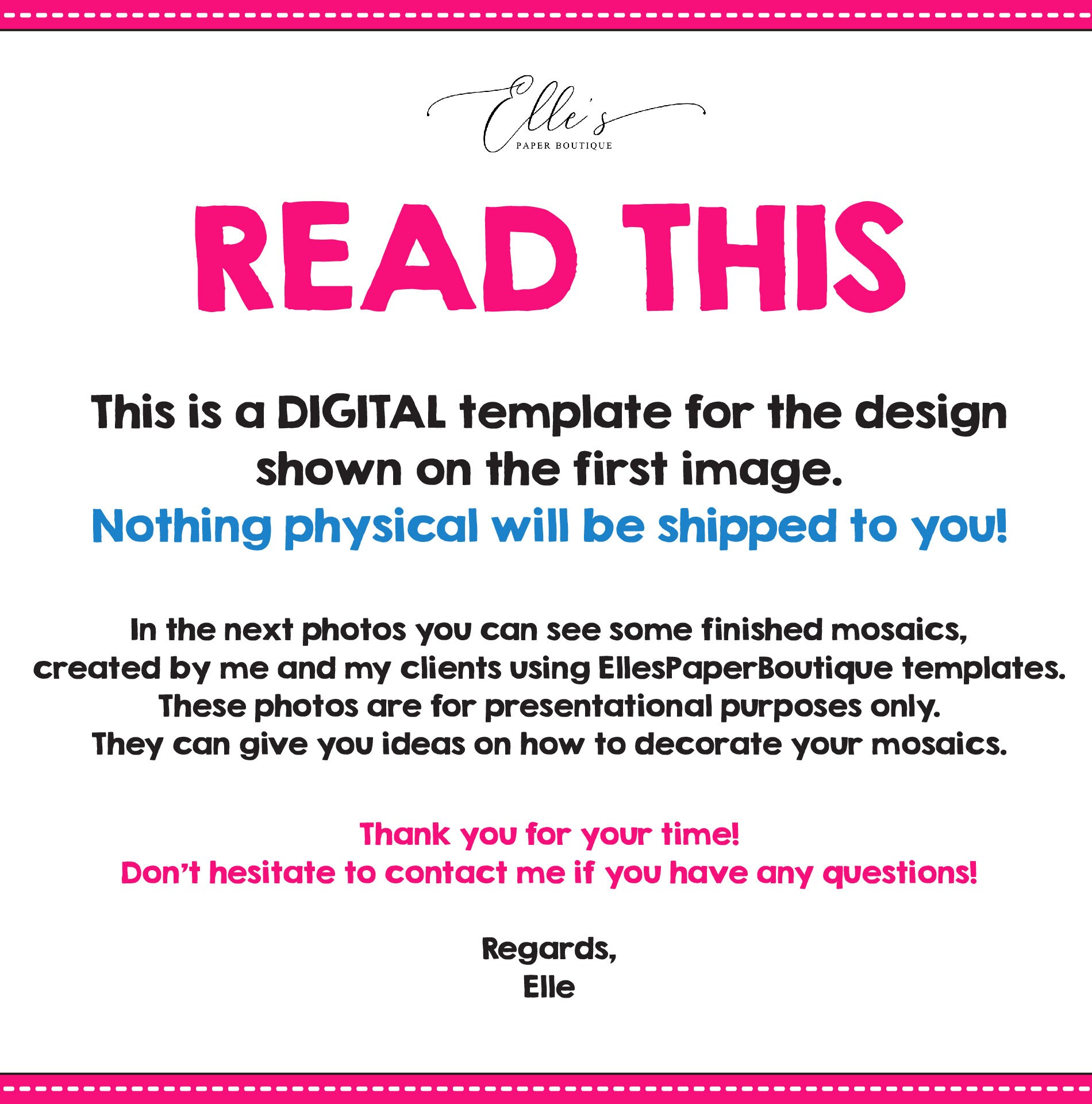 Number 1 Mosaic Balloon Frame Template Square Letters PDF Print Files