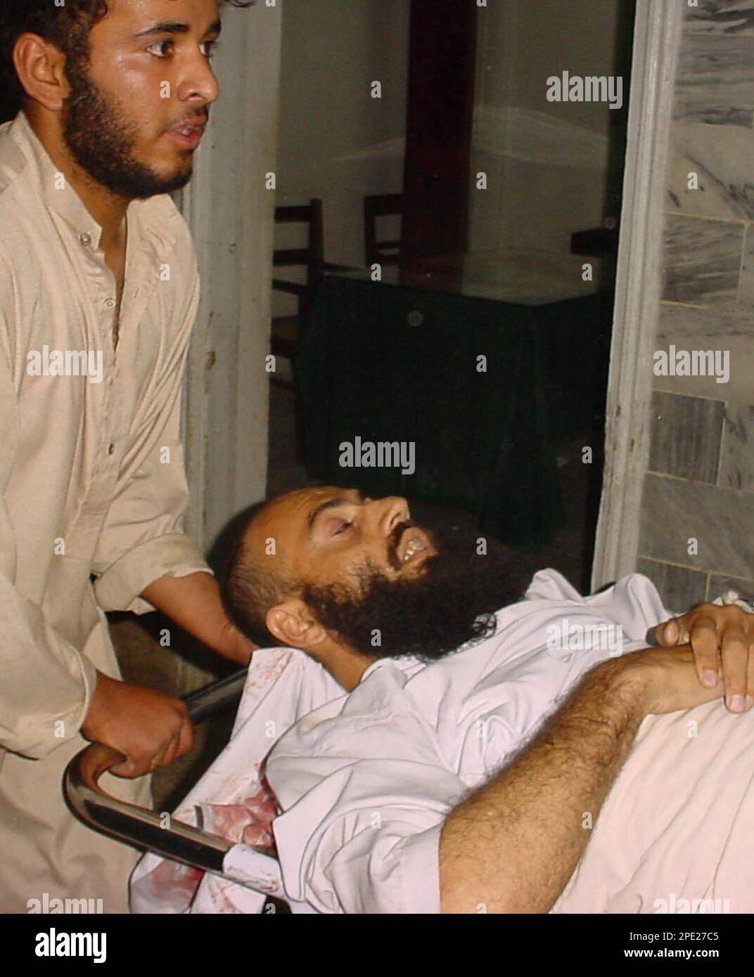 An unidentified person stretchers injured Maulvi Jalil Ahmed Kakar 30